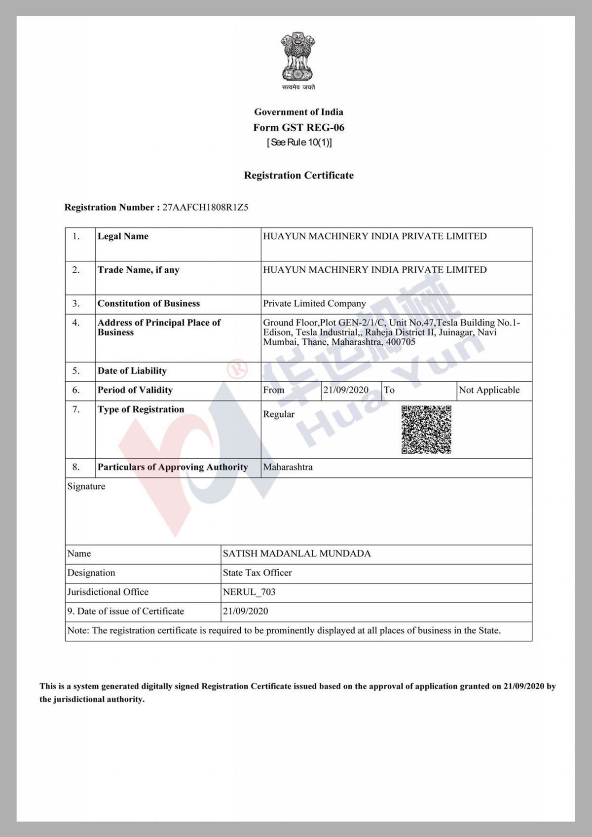印度分公司營業(yè)執(zhí)照及稅務(wù)證